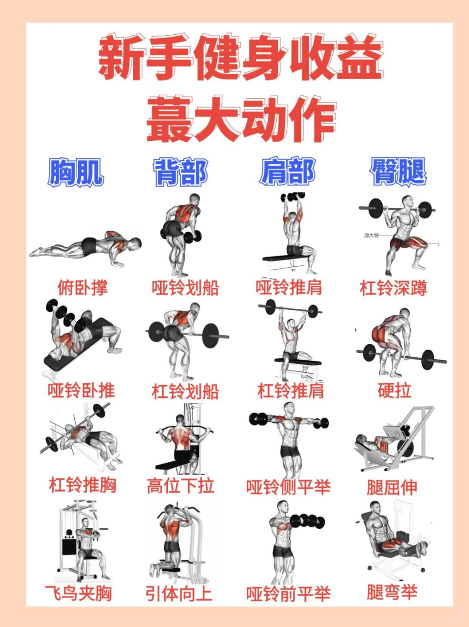 如果你是新手,这些动作会让你受益匪浅 如果你第一次去健身房,掌握这些动作就够了 上下肢训练,针对大肌肉群的超详细动作口诀 简单易学,实用好记,收藏打卡鸭!